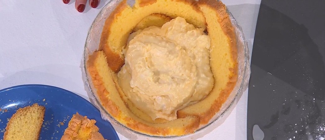 Componiamo: foderiamo una ciotola a forma di mezzasfera con della pellicola. Rivestiamo le pareti con delle fette di pan di Spagna (o savoiardi inzuppati), quindi le bagniamo con la bagna al limoncello (miscelate semplicemente gli ingredienti indicati sopra). Creiamo un primo strato generoso di crema sul fondo e copriamo con uno strato di pan di Spagna inzuppato. Ancora crema e finiamo con il pan di Spagna inzuppato. Copriamo con la pellicola e lasciamo riposare in frigorifero per qualche ora.