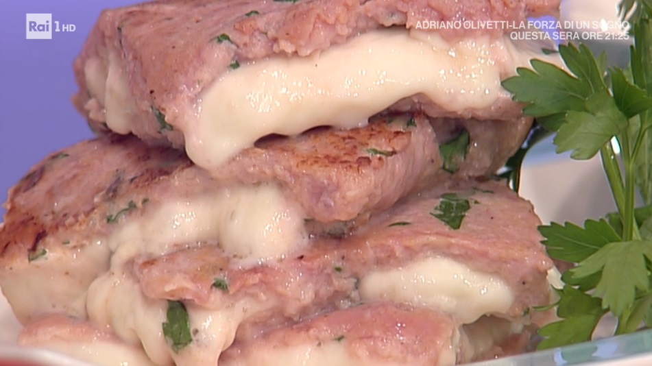 Tagliamo la mozzarella a fette e la asciughiamo pressandola tra fogli di carta assorbente. Disponiamo le fettine su metà del rettangolo di carne e copriamo la mozzarella con l’altra metà del rettangolo, in modo da sigillarla all’interno. Tagliamo a quadratoni e li cuociamo in padella ben calda, fino a farli dorare su entrambi i lati.