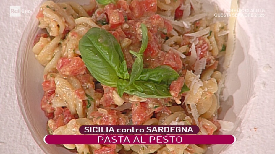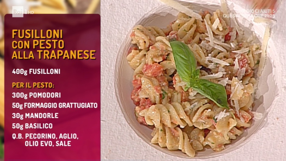 - Pesto: 300 g pomodori, 50 g formaggio grattugiato, 30 g mandorle, 50 g basilico, pecorino, aglio, olio evo, sale