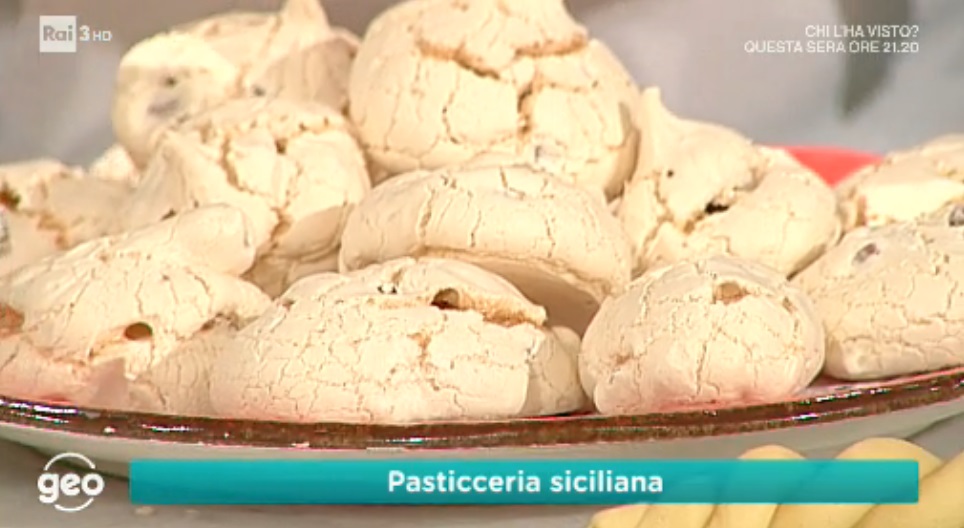 Quando la meringa è pronta, uniamo l’altra metà dello zucchero, mescolando delicatamente con una spatola. A questo punto, incorporiamo anche le mandorle. Formiamo dei mucchietti di impasto su una teglia ricoperta da carta da forno. Cuociamo a 165°C in forno statico per circa 35 minuti, mettendo un piccolo spessore tra il portellone ed il forno, in modo che i biscotti possano asciugarsi.