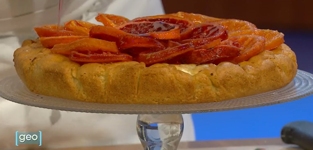 Tagliamo le arance a fette spesse meno di mezzo cm e le mettiamo in padella con zucchero e un po’ del loro succo. Le lasciamo caramellare qualche minuto. Quando la crostata è fredda, disponiamo sopra le arance e le irroriamo con il loro sciroppo (formatosi in cottura).