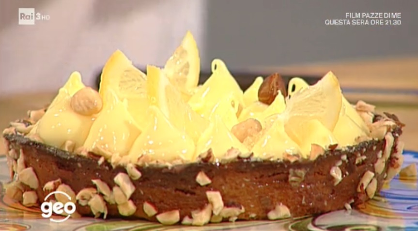 Mescoliamo energicamente la crema fredda con la buccia grattugiata di limone. Trasferiamo in una sacca da pasticciere e farciamo il guscio di frolla con la crema. Decoriamo con nocciole e limone caramellato.