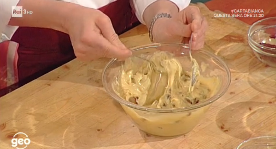 Mettiamo in ammollo l’uvetta nella grappa. Sciogliamo il lievito di birra nel latte tiepido o a temperatura ambiente, insieme ad un cucchiaio di zucchero. In una ciotola, quindi, disponiamo la farina a fontana. Al centro mettiamo lo zucchero rimasto, un pizzico di sale, le uova intere, il lievito sciolto nel latte, un pizzico di cannela e la scorza grattugiata del limone. Impastiamo fino ad ottenere un composto omogeneo e liscio, quindi incorporiamo l’uvetta rivenuta nella grappa e sgocciolata e, a piacere, dei pinoli tostati. Copriamo l’impasto e lo lasciamo lievitare per 5 ore o meglio per tutta la notte.