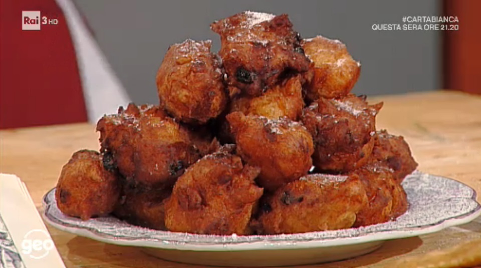 - 500 g farina 00, 2 bicchieri di latte, 2 uova, 130 g uvetta sultanina, 80 g zucchero, 40 g lievito di birra, 2 bicchierini di grappa, 1 limone, 1 pizzico di cannella, 1 pizzico di sale, olio per friggere, zucchero semolato