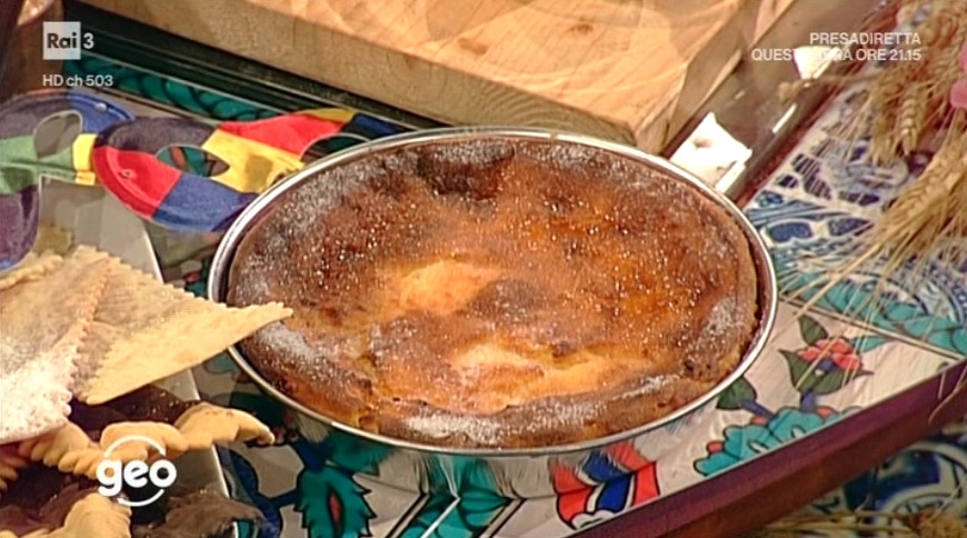 Trasferiamo l’impasto in una tortiera ben imburrata e inforniamo a 180° per circa un’ora. Dev’essere ben dorato. Sforniamo e spolveriamo con zucchero semolato o a velo.