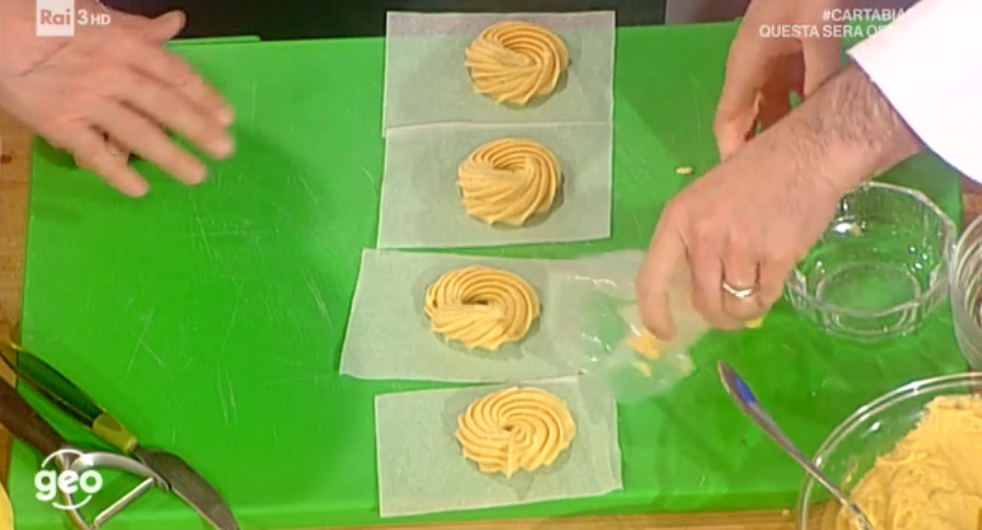 Per la versione fritta, formiamo le zeppole su quadrati di carta forno. Immergiamo le zeppole, insieme alla carta, nell’olio a 170° (non troppo caldo, o rimane cruda al centro). Appena la carta si stacca, la eliminiamo. Quando la zeppola è gonfia e dorata, la facciamo sgocciolare su carta assorbente. Possiamo anche cuocerle in forno preriscaldato e statico a 200° per 25 minuti circa.