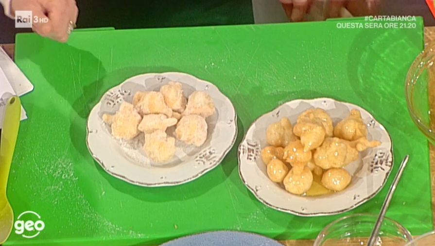 Raffaele Lenti, esperto cuoco, ha proposto una delle sue ricette all’interno di Geo, lo storico programma di Rai3 condotto, ogni pomeriggio, da Sveva Sagramola. Nel dettaglio, l’abile cuoco ci ha insegnato a preparare le zeppole itrane.