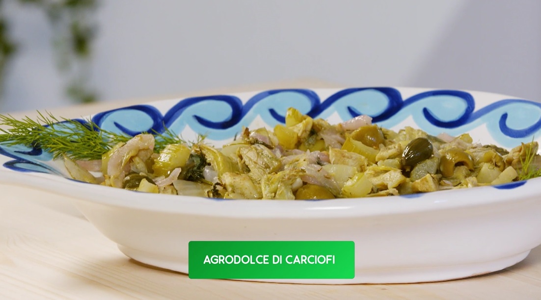 Nelle nuove puntate della serie di Food Network Giusina in cucina, dedicata alla cucina siciliana preparata in maniera semplice, ‘casalinga‘, in onda sabato 13 marzo, alle 15:45, sul canale 33, Giusina Battaglia, giornalista ed appassionata di cucina, ha preparato un menu a base di carciofi, rivelandola ‘sua‘ ricetta dell’agrodolce di carciofi. Di seguito gli ingredienti necessari ed il procedimento.