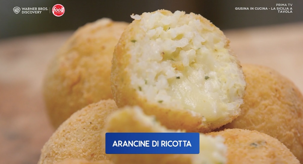Nelle nuove puntate della serie di Food Network Giusina in cucina, dedicata alla cucina siciliana preparata in maniera semplice, ‘casalinga‘, in onda sabato 10 dicembre, alle 15:45, sul canale 33, Giusina Battaglia, giornalista ed appassionata di cucina, ha preparato un menu squisitamente siciliano, rivelando la ‘sua‘ ricetta delle arancine di ricotta. Trovate le ricette di Giusina nel suo libro, da poco in libreria, e sul suo sito, giusinaincucina.com. Di seguito gli ingredienti necessari ed il procedimento.