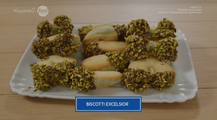 biscotti excelsiorNelle nuove puntate della serie di Food Network Giusina in cucina – Gusto e tradizione palermitana, dedicata alla cucina siciliana preparata in maniera semplice, ‘casalinga‘, in onda sabato 14 novembre, alle 15:45, sul canale 33, Giusina Battaglia, giornalista ed appassionata di cucina, ha rivelato la ‘sua‘ ricetta dei biscotti excelsior. Di seguito gli ingredienti necessari ed il procedimento.