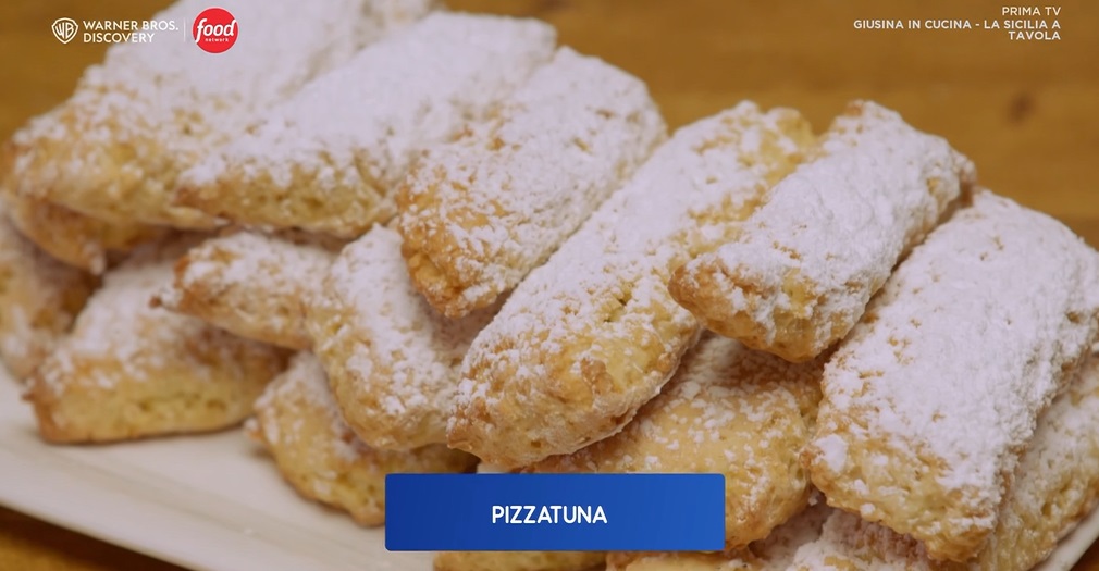Nelle nuove puntate della serie di Food Network Giusina in cucina, dedicata alla cucina siciliana preparata in maniera semplice, ‘casalinga‘, in onda sabato 20 maggio, alle 15:45, sul canale 33, Giusina Battaglia, giornalista ed appassionata di cucina, ha preparato un menu squisitamente siciliano, rivelando la ‘sua‘ ricetta dei biscotti pizzatuna. Trovate le ricette di Giusina nel suo libro, da poco in libreria, e sul suo sito, giusinaincucina.com. Di seguito gli ingredienti necessari ed il procedimento.
