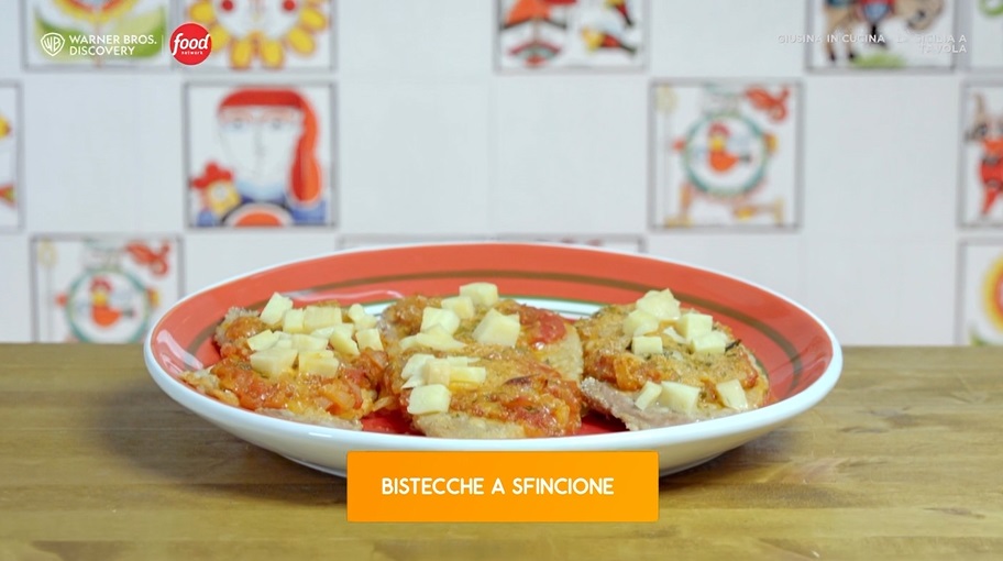 Nelle nuove puntate della serie di Food Network Giusina in cucina, dedicata alla cucina siciliana preparata in maniera semplice, ‘casalinga‘, in onda sabato 28 ottobre, alle 15:45, sul canale 33, Giusina Battaglia, giornalista ed appassionata di cucina, ha preparato un menu squisitamente siciliano, rivelando la ‘sua‘ ricetta delle bistecche a sfincione. Trovate le ricette di Giusina nel suo libro, da poco in libreria, e sul suo sito, giusinaincucina.com. Di seguito gli ingredienti necessari ed il procedimento.