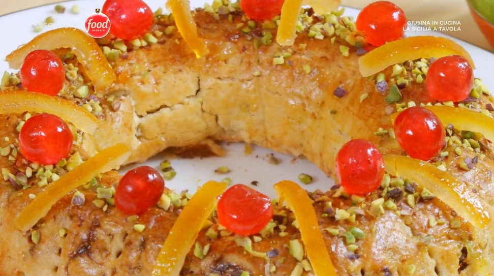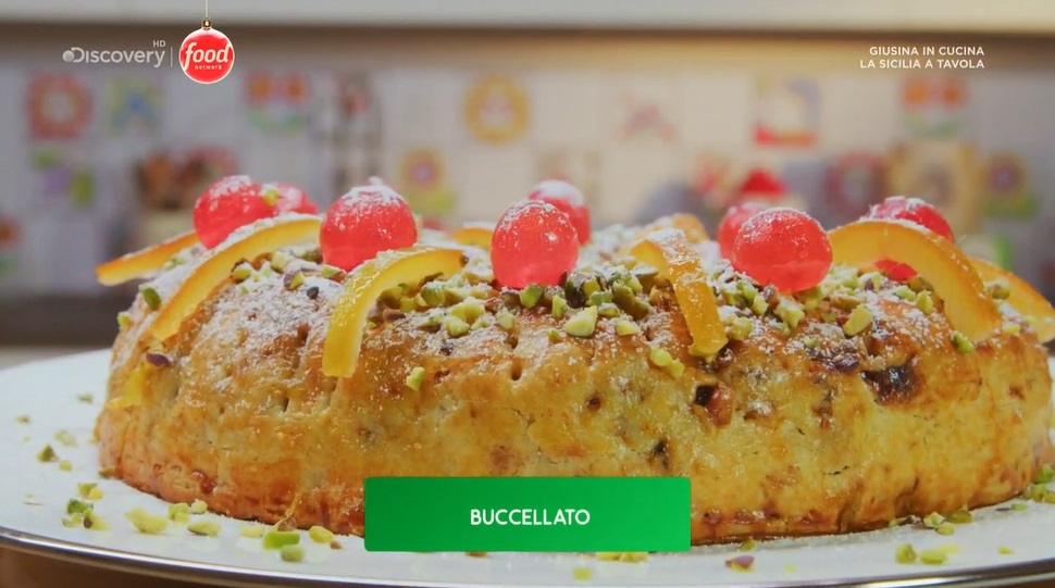 buccellatoNelle nuove puntate della serie di Food Network Giusina in cucina, dedicata alla cucina siciliana preparata in maniera semplice, ‘casalinga‘, in onda sabato 11 dicembre, alle 15:45, sul canale 33, Giusina Battaglia, giornalista ed appassionata di cucina, ha preparato un menu squisitamente siciliano, rivelando la ‘sua‘ ricetta del buccellato. Trovate le ricette di Giusina nel suo libro, da poco in libreria, e sul suo sito, giusinaincucina.com. Di seguito gli ingredienti necessari ed il procedimento.