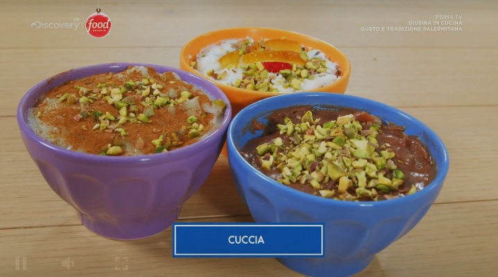 cuccia con crema di latte ricotta e cacaoNelle nuove puntate della serie di Food Network Giusina in cucina – Gusto e tradizione palermitana, dedicata alla cucina siciliana preparata in maniera semplice, ‘casalinga‘, in onda sabato 12 dicembre, alle 15:45, sul canale 33, Giusina Battaglia, giornalista ed appassionata di cucina, ha rivelato la ‘sua‘ ricetta della cuccia con crema di latte ricotta e cacao. Di seguito gli ingredienti necessari ed il procedimento.