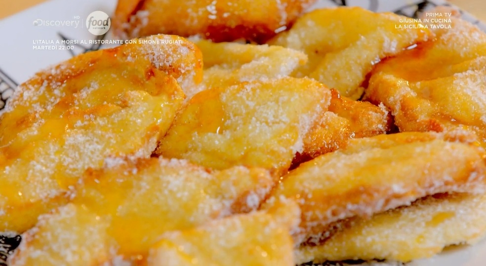 Tagliamo la crema a rombi o rettangoli e la tuffiamo in olio caldo e profondo. Lasciamo friggere fino a leggera doratura. Scoliamo su carta assorbente e, quando sono ancora caldi, li passiamo nello zucchero semolato. Serviamo con sopra il miele.