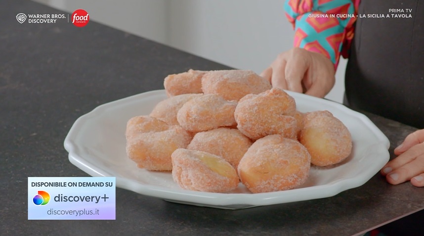 Nelle nuove puntate della serie di Food Network Giusina in cucina, dedicata alla cucina siciliana preparata in maniera semplice, ‘casalinga‘, in onda sabato 3 febbraio, alle 15:45, sul canale 33, Giusina Battaglia, giornalista ed appassionata di cucina, ha preparato un menu squisitamente siciliano, rivelando la ‘sua‘ ricetta del pane fritto dolce. Trovate le ricette di Giusina nel suo nuovo libro, da poco in libreria, e sul suo sito, giusinaincucina.com. Di seguito gli ingredienti necessari ed il procedimento.