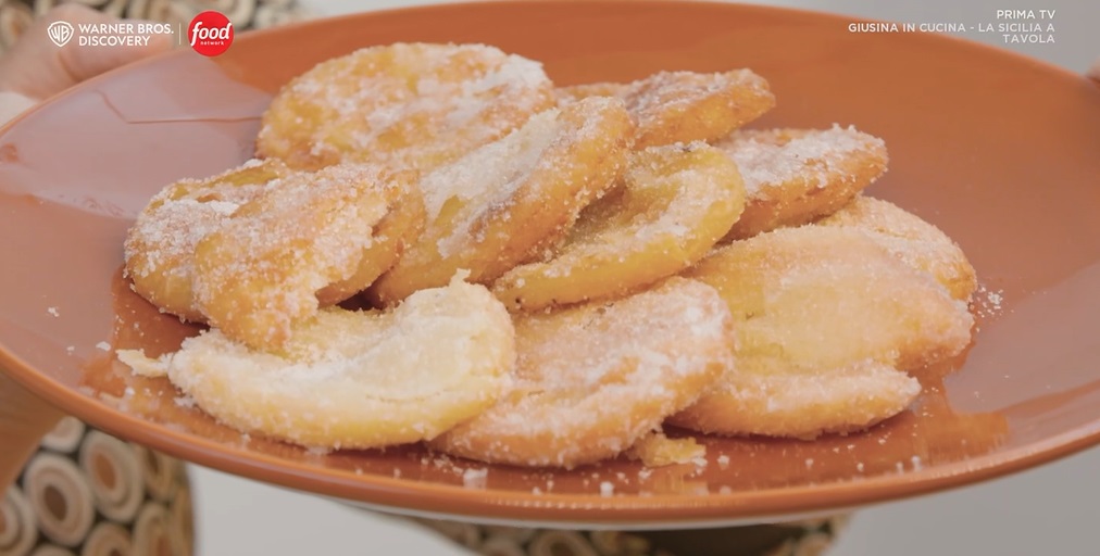 Nelle nuove puntate della serie di Food Network Giusina in cucina, dedicata alla cucina siciliana preparata in maniera semplice, ‘casalinga‘, in onda sabato 10 dicembre, alle 15:45, sul canale 33, Giusina Battaglia, giornalista ed appassionata di cucina, ha preparato un menu squisitamente siciliano, rivelando la ‘sua‘ ricetta delle panelle dolci. Trovate le ricette di Giusina nel suo libro, da poco in libreria, e sul suo sito, giusinaincucina.com. Di seguito gli ingredienti necessari ed il procedimento.