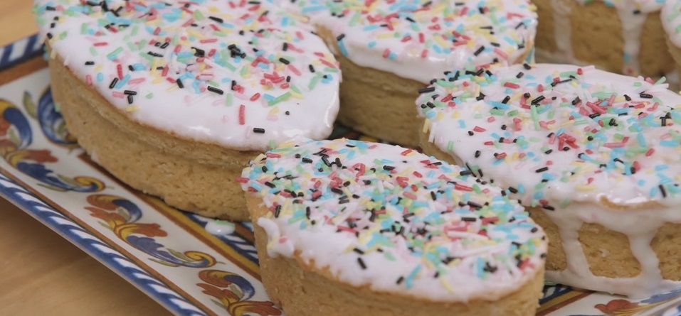 - Glassa: 2 cucchiai di succo di limone, 2 albumi, 250 g zucchero a velo