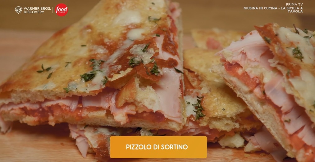 Tagliamo il pizzolo a metà, come fosse un panino, e condiamo la parte inferiore con olio, sale e origano, quindi lo farciamo con pomodoro fresco a fette, tuma a fette, prosciutto cotto.