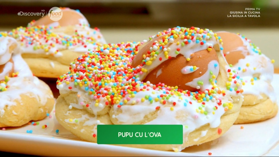 Giusina ritaglia un tondo, quindi posizioniamo sul bordi una treccina di impasto e al centro ‘incastona’ l’uovo. Cuociamo i pupi in forno caldo e statico a 180° per 20-30 minuti.