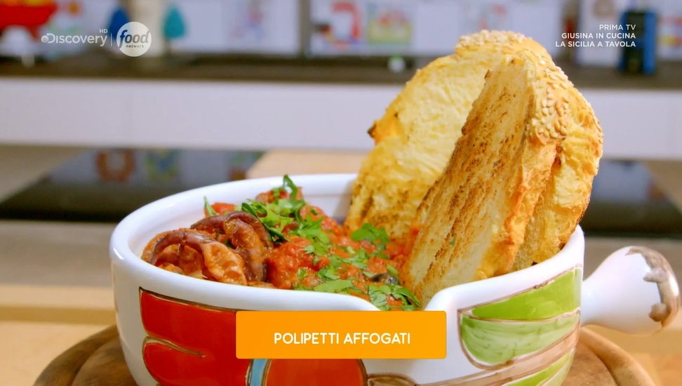 - 1 kg polipetti, 500 g pomodori pelati, peperoncino, mezzo bicchiere vino bianco, sale, 1 spicchio d’aglio, 1 cipolla, prezzemolo, olio evo