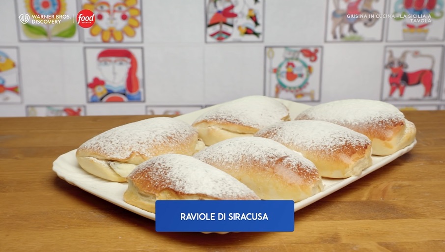 Nelle nuove puntate della serie di Food Network Giusina in cucina, dedicata alla cucina siciliana preparata in maniera semplice, ‘casalinga‘, in onda sabato 14 ottobre, alle 15:45, sul canale 33, Giusina Battaglia, giornalista ed appassionata di cucina, ha preparato un menu squisitamente siciliano, rivelando la ‘sua‘ ricetta delle raviole di Siracusa. Trovate le ricette di Giusina nel suo libro, da poco in libreria, e sul suo sito, giusinaincucina.com. Di seguito gli ingredienti necessari ed il procedimento.