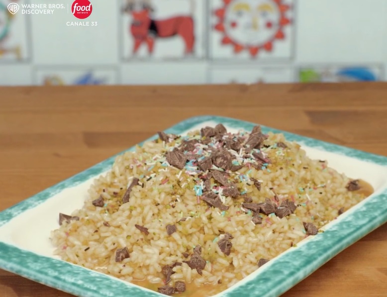 - 500 g riso, 200 g zucchero, cannella, zafferano, granella di pistacchi, scaglie di cioccolato, codette colorate