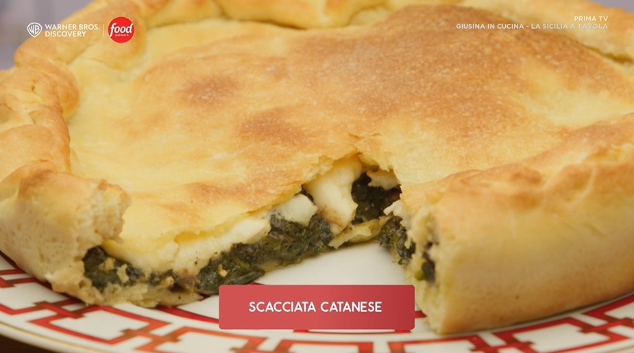 Nelle nuove puntate della nuova serie di Food Network Giusina in cucina – Acqua e farina, dedicata ai lievitati siciliani preparati in maniera semplice, ‘casalinga‘, in onda sabato 5 ottobre, alle 15:45, sul canale 33, Giusina Battaglia, giornalista ed appassionata di cucina, ha rivelato la ‘sua‘ ricetta della scacciata catanese. Trovate le ricette di Giusina nel suo libro, ‘Sicilia Acqua e Farina‘, e sul suo sito, giusinaincucina.com. Di seguito gli ingredienti necessari ed il procedimento.