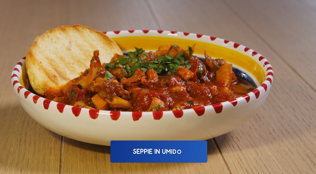 - 1 kg seppie, vino bianco, 1 cipolla, prezzemolo, aglio, 600 g pomodoro pelato, sale, olio