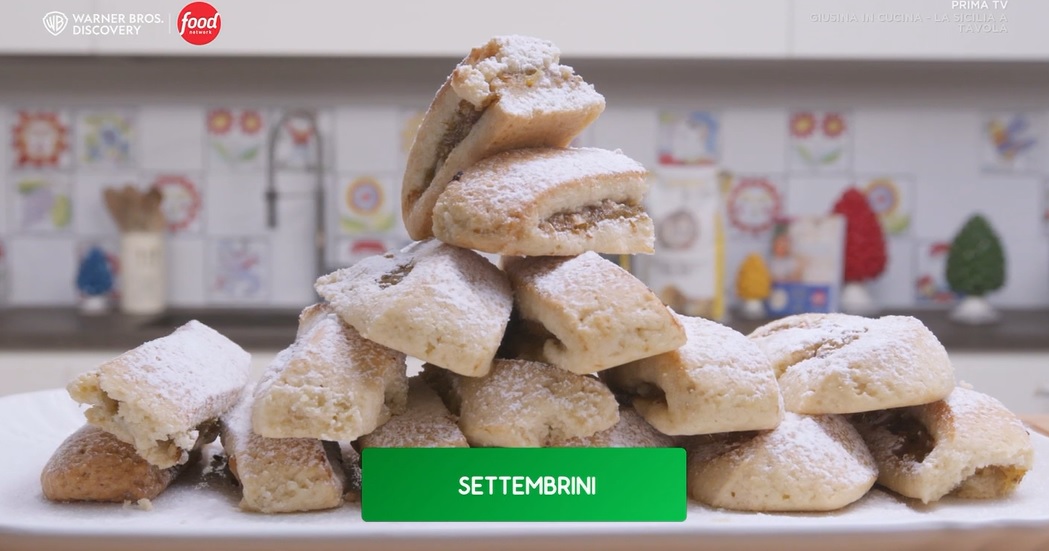 Nelle nuove puntate della serie di Food Network Giusina in cucina, dedicata alla cucina siciliana preparata in maniera semplice, ‘casalinga‘, in onda sabato 1 ottobre, alle 15:45, sul canale 33, Giusina Battaglia, giornalista ed appassionata di cucina, ha preparato un menu squisitamente siciliano, rivelando la ‘sua‘ ricetta dei biscotti settembrini. Trovate le ricette di Giusina nel suo libro, da poco in libreria, e sul suo sito, giusinaincucina.com. Di seguito gli ingredienti necessari ed il procedimento.
