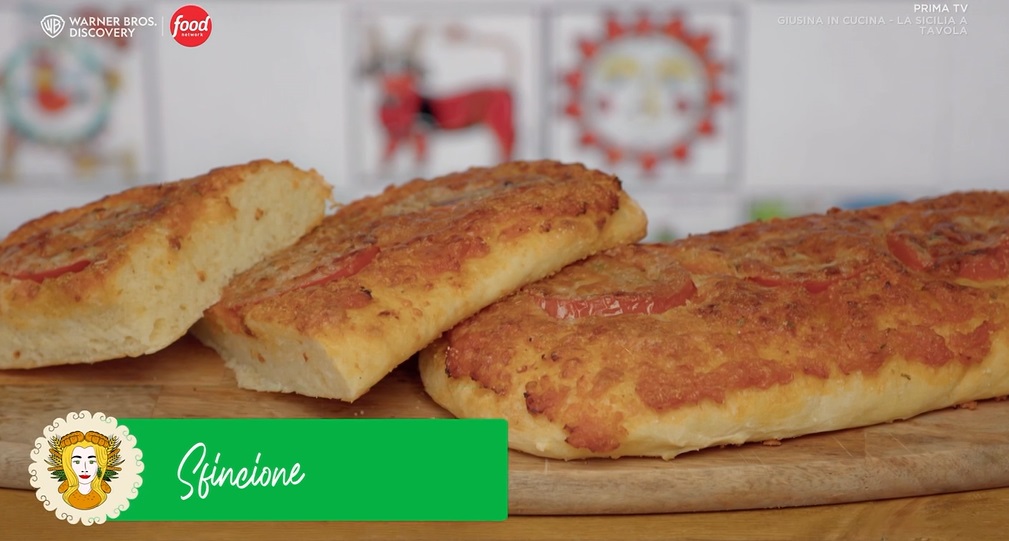 Dividiamo l’impasto in più panetti (almeno 4), a cui diamo la forma di lingue spesse circa mezzo cm. Posizioniamo le lingue su una teglia con carta forno, distanziate, e le condiamo in superficie con la salsa di cipolle e del pomodoro fresco a fettine sottili. Copriamo e lasciamo lievitare fino al raddoppio. Una volta lievitati gli sfincioni, li finiamo di condire con caciocavallo grattugiato, pangrattato, origano ed olio evo. Cuociamo in forno caldo e statico a 220° per circa 20 minuti.
