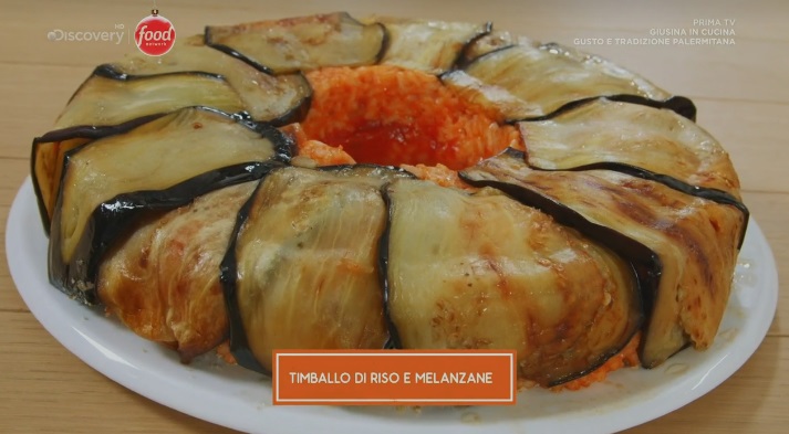Nelle nuove puntate della serie di Food Network Giusina in cucina – Gusto e tradizione palermitana, dedicata alla cucina siciliana preparata in maniera semplice, ‘casalinga‘, in onda sabato 12 dicembre, alle 15:45, sul canale 33, Giusina Battaglia, giornalista ed appassionata di cucina, ha rivelato la ‘sua‘ ricetta del timballo di riso e melanzane. Di seguito gli ingredienti necessari ed il procedimento.