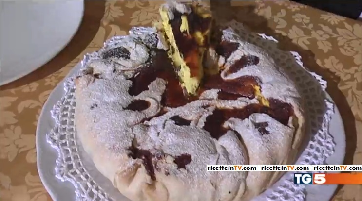 - Prendiamo la pasta dal frigo e la stendiamo; ci foderiamo il fondo ed i bordi di una tortiera coperta da carta forno; bucherelliamo il fondo ed adagiamo le mele fredde, l’uvetta ammollata in acqua o rum e strizzate e, infine, la crema di ricotta. Richiudiamo verso l’interno le estremità della pasta. Inforniamo a 180° per 40 minuti. Spolveriamo con zucchero a velo e serviamo fredda.