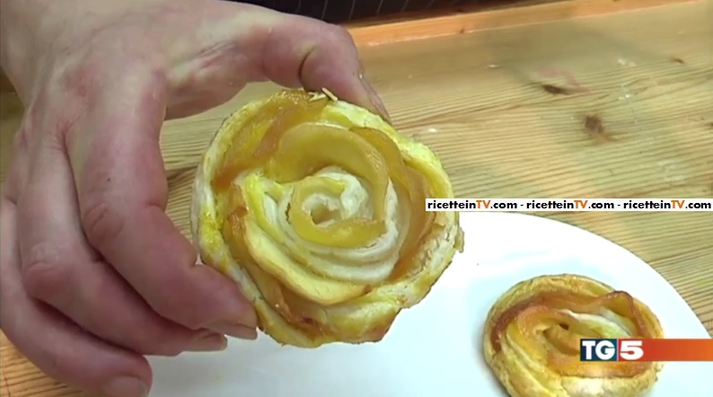 La ricetta delle roselline di mela e pasta sfoglia, proposta all’interno della rubrica enogastronomica del Tg5 – Gusto