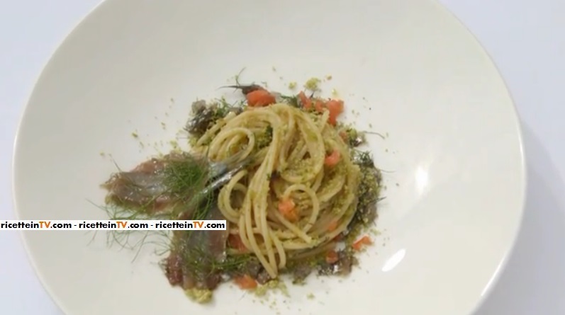 spaghettone con pesce azzurro olive capperi e pomodoriniLo chef stellato Antonello Colonna, protagonista dell’edizione nostrana di Hotel da Incubo, nel tentativo di risollevare le sorti di alberghi, locande e bed & breakfast sull’orlo del fallimento, ha proposto una delle sue imperdibili ricette, quella dello spaghettone con pesce azzurro olive capperi e pomodorini.