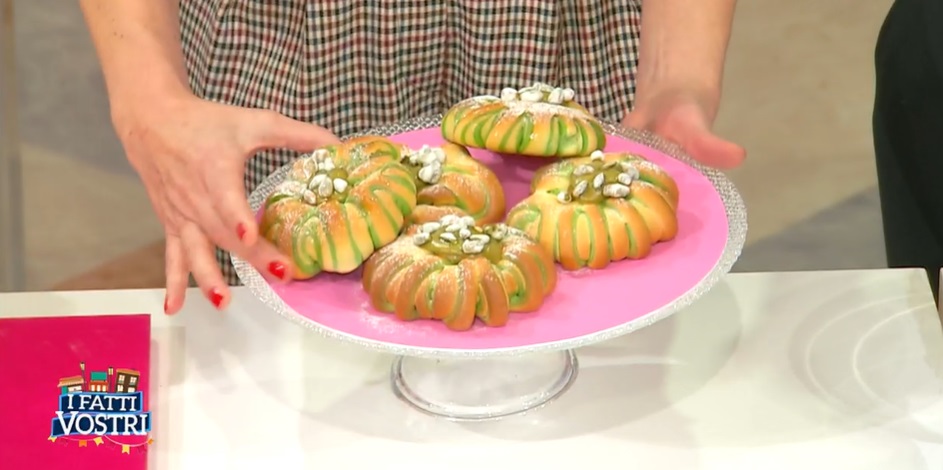 I fatti Vostri, celebre programma del mattino di Raidue condotto da Tiberio Timperi ed Anna Falchi, nella puntata del venerdì ospita uno spazio dedicato alla pasticceria. A proporre le sue preziose ricette è il cioccolatiere Ernst Knam, affiancato dalla moglie. Ecco la brioche al pistacchio.