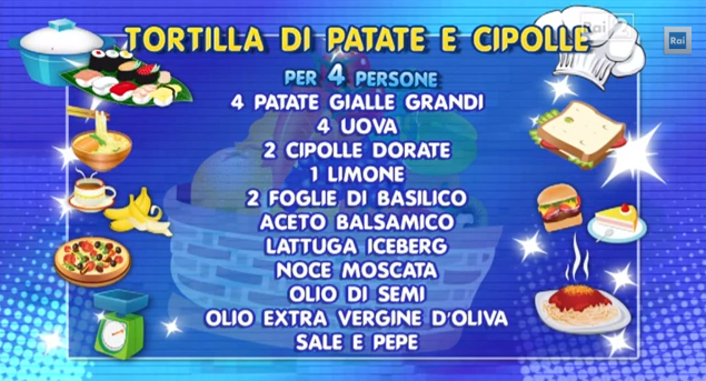 La ricetta della tortilla di patate e cipolle, proposta da Marisa Laurito a “I Fatti Vostri”.