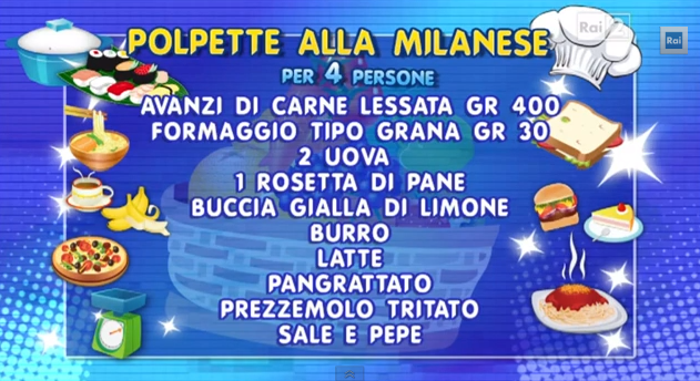 La ricetta delle polpette alla milanese, proposta da Marisa Laurito a “I Fatti Vostri”.
