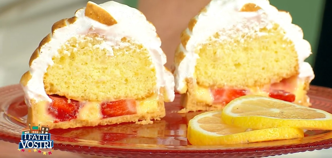 Spennelliamo le crostatine di frolla, ormai fredde, con del cioccolato bianco fuso, in modo che rimangano croccanti. Creiamo sul fondo uno strato di crema al limone. Disponiamo sopra le fragole fresche a pezzetti e copriamo con altra crema fino ad arrivare al bordo della crostatina. Posizioniamo sopra delle semi sfere di pan di Spagna inzuppate in uno sciroppo di acqua, zucchero e succo di limone. Spatoliamo l’interno dolce con della meringa (albume e zucchero). Fiammeggiamo con il cannello, fino a farla dorare leggermente.