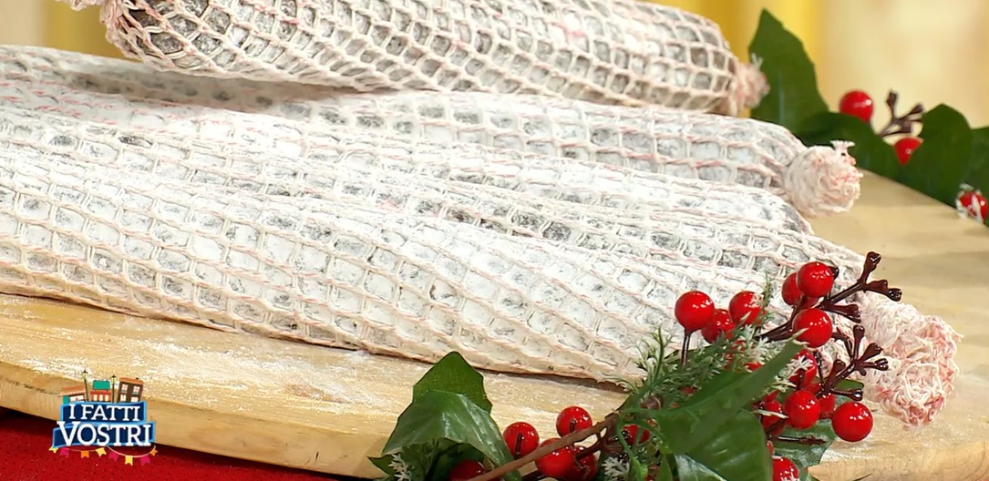 Su un piano spolverato con abbondante zucchero a velo, diamo la forma di un salame all’impasto: possiamo farne anche 2 più piccoli. Avvolgiamo nella pellicola e lasciamo riposare per 2 ore in frigorifero.