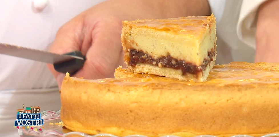 I fatti Vostri, celebre programma del mattino di Raidue condotto da Tiberio Timperi ed Anna Falchi, nella puntata del venerdì ospita uno spazio dedicato alla pasticceria. A proporre le sue preziose ricette è il cioccolatiere Ernst Knam, affiancato dalla moglie. Ecco la torta di ricotta e visciole.