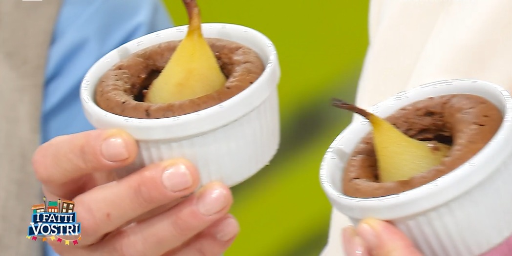 I fatti Vostri, celebre programma del mattino di Raidue condotto da Tiberio Timperi ed Anna Falchi, nella puntata del venerdì ospita uno spazio dedicato alla pasticceria. A proporre le sue preziose ricette è il cioccolatiere Ernst Knam, affiancato dalla moglie. Ecco il tortino pera e cioccolato.