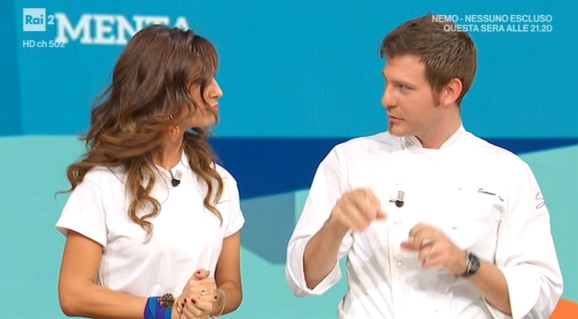 - 400 g di trofie, 250 g di zucchine, 100 g di guanciale, 8 fiori di zucchina, 30 g di pinoli, 100 g ricotta di pecora, menta
