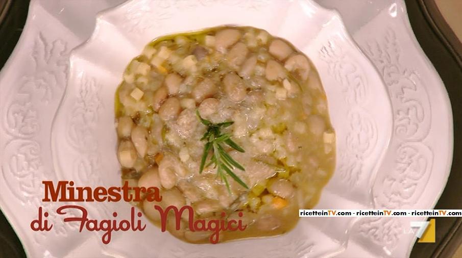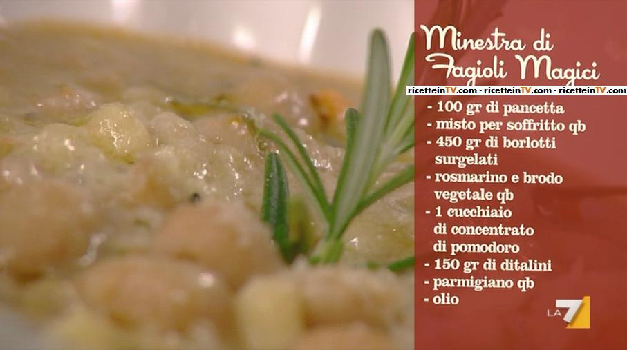 Benedetta Parodi, intenta a confezionare un “menu delle favole”, ha aperto un primo salutare e… “magico”, una minestra di fagioli magici.
