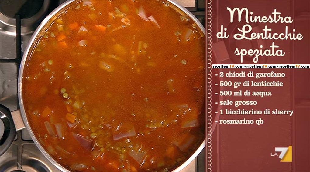 Benedetta Parodi, intenta a confezionare un menu “in giallo”, ha proposto la minestra di lenticchie speziata. Di seguito ingredienti e procedimento.