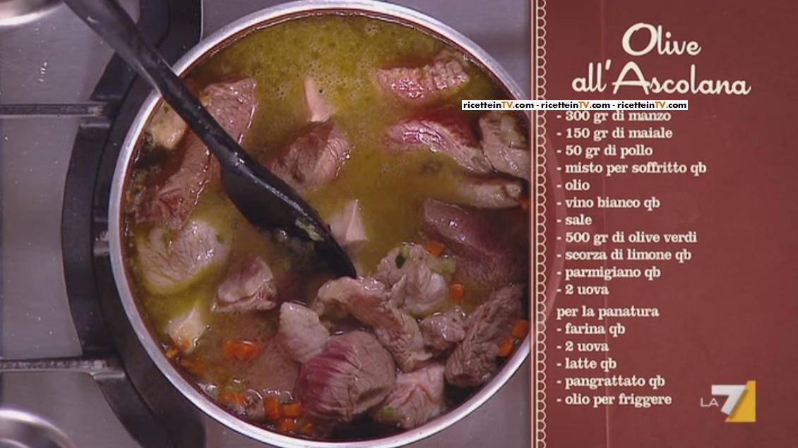 Benedetta Parodi, intenta a confezionare un menu “ del centro Italia”, ha proposto le olive all’ascolana. Di seguito ingredienti e procedimento.