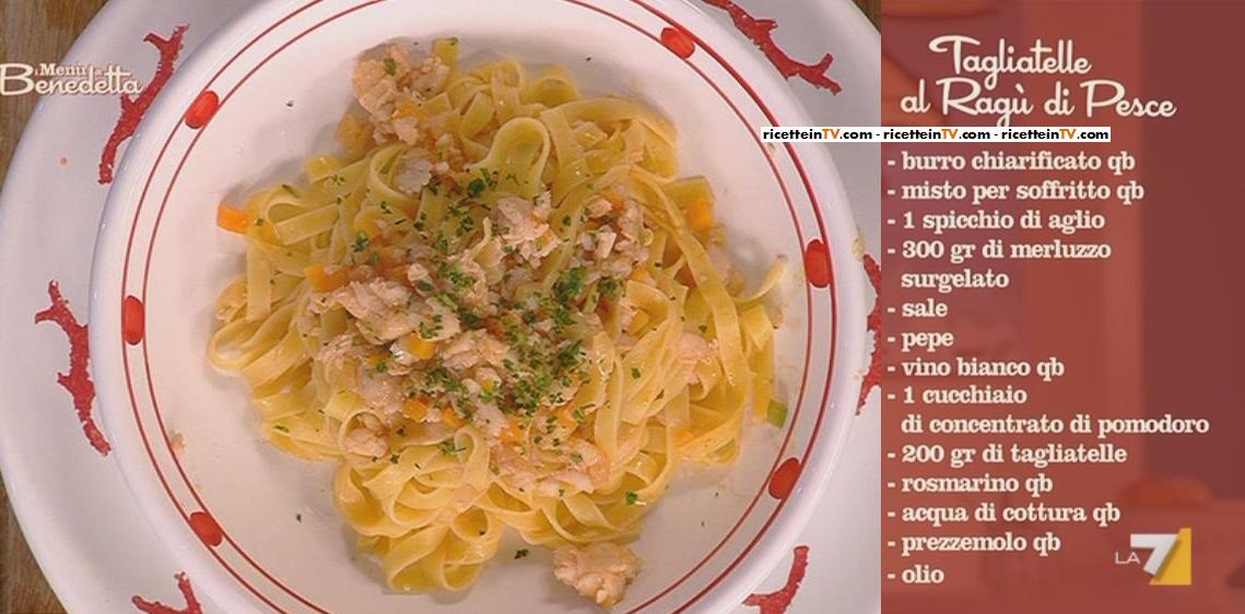 Benedetta Parodi, intenta a confezionare un menu “finto ricco”, ha proposto i tagliatelle al ragù di pesce. Di seguito ingredienti e procedimento.