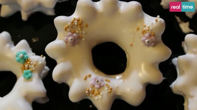 Preparare la glassa sbattendo a neve gli albumi con lo zucchero a velo. Mescolare continuamente aggiungendo poco a poco il succo di limone e l’essenza di vaniglia. Quando i biscotti saranno freddi immergerli uno ad uno nella glassa aiutandosi con un pennellino per coprire tutta la superficie e gli intagli con la glassa. Aggiungere le decorazioni di zucchero a piacere e porre a riposare su un vassoio finché la glassa non sarà solidificata.