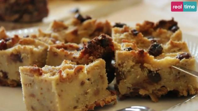 Ingredienti per 6-8 persone: 250 g di farina gialla da polenta, 100 g di farina di grano tenero, 100 g di uvetta, 50 g di pinoli, 50 g di fichi secchi, 100 g burro,