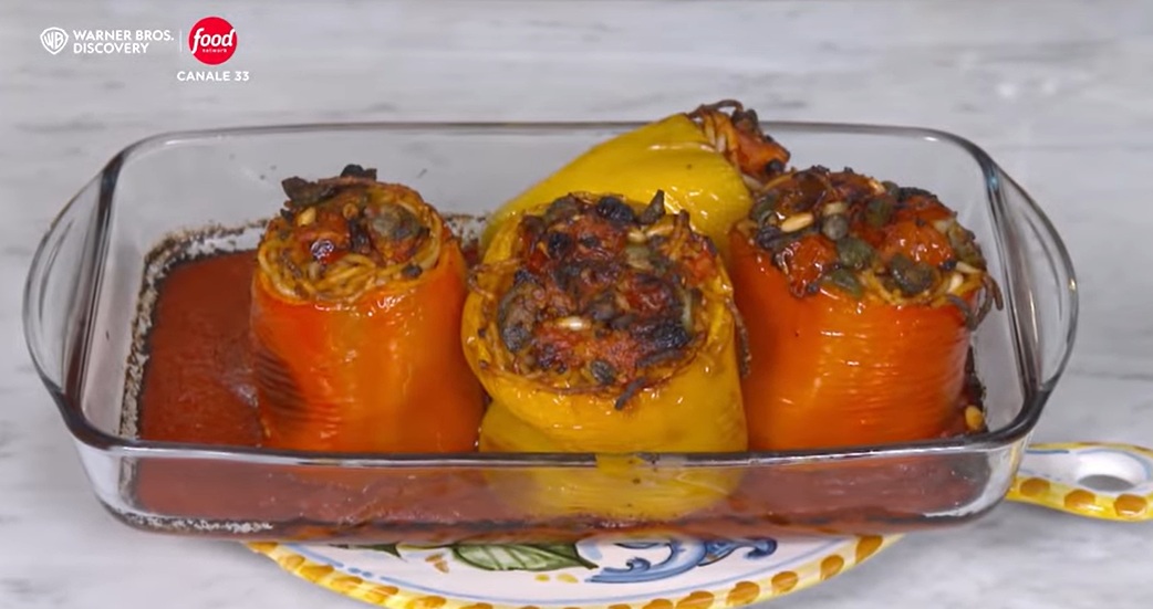 Nelle nuove puntate della nuova serie di Food Network In cucina con Imma e Matteo, i ‘padroni’ del Castello delle Cerimonie di Real Time, dedicata alla cucina partenopea preparata in maniera semplice, ‘casalinga‘, in onda ogni sabato sul canale 33, Imma Polese ha rivelato la ‘sua‘ ricetta dei peperoni ripieni di spaghetti. Di seguito gli ingredienti necessari ed il procedimento.